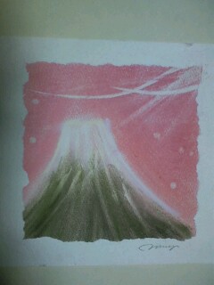 写真は、今日、私が描いた「和(なごみ)アート」の「富士山」です。